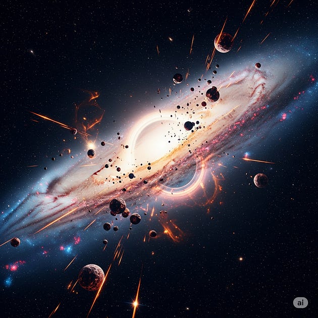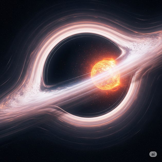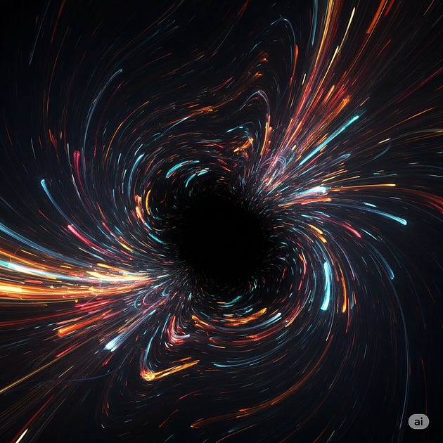 In deepest space where darkness dwells, A tale of cosmic wonder tells Of holes so black and graves so deep, Where even light its path can’t keep.