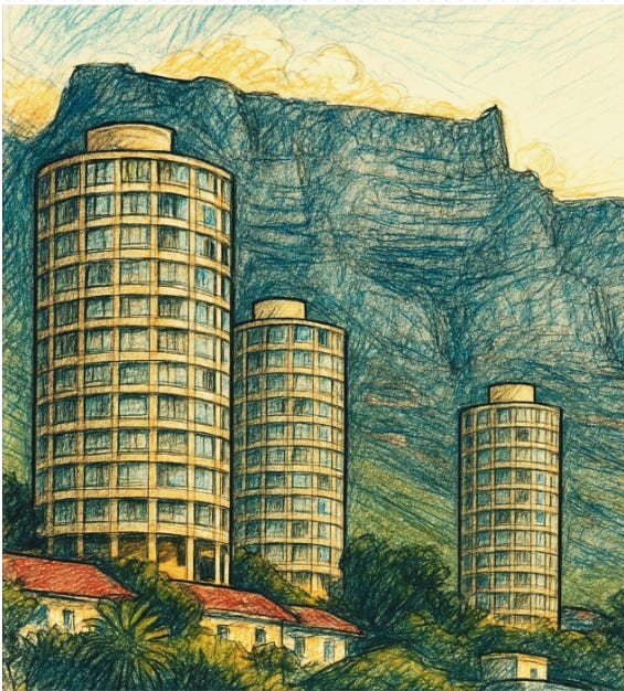 The three towers of Disa Park rise against Table Mountain like tuning forks struck by morning light. Built in the ’70s when Cape Town dreamed of becoming Manhattan, they stand as monuments to a future that thankfully fucked off. Lania Lambert had found the old Interster footage in the building’s archives—that cocaine-fueled fever dream i…